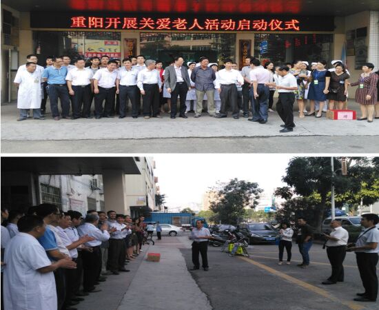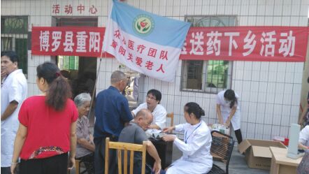 2015年10月19日,博羅縣重陽節(jié)關(guān)愛老年活動啟動儀式在博羅縣中醫(yī)醫(yī)院舉行,本次活動由縣老齡委、民政局、衛(wèi)計局、縣老年醫(yī)療衛(wèi)生協(xié)會、縣紅十字會主辦,縣中醫(yī)醫(yī)院承辦,博羅彭城慈善會、廣東穗康醫(yī)藥有限公司、博羅康佳、羅浮山黃龍宮太上丹道養(yǎng)生試范基地協(xié)辦。出席本次活動的領(lǐng)導(dǎo)和嘉賓為:博羅縣原人大主任蔡民壽、博羅縣原政協(xié)副主席兼統(tǒng)戰(zhàn)部長劉細(xì)雅、博羅縣老年醫(yī)療衛(wèi)生協(xié)會會長陳勝如、博羅康佳董事長曹巨潮及舉辦單位單位相關(guān)負(fù)責(zé)人。儀式結(jié)束后,舉辦單位相關(guān)領(lǐng)導(dǎo)帶領(lǐng)眾心醫(yī)療團(tuán)隊到博羅縣羅陽鎮(zhèn)田牌敬老院舉行慰問及送醫(yī)送藥義診活動。 本次活動到10月30日圓滿結(jié)束,共慰問9個鄉(xiāng)鎮(zhèn)敬老院老人,總?cè)藬?shù)157人,送去醫(yī)療器械一批(電子血壓計、電子探熱針、老人護(hù)理包)和慰問金,為老人進(jìn)行健康檢查和建立健康檔案,并進(jìn)行義診送醫(yī)送藥活動。活動取得了圓滿成功,受到當(dāng)?shù)卣⒕蠢显豪先思叭罕姷囊恢潞迷u。本次活動得到羅陽鎮(zhèn)衛(wèi)生院、泰美鎮(zhèn)衛(wèi)生院、石壩鎮(zhèn)衛(wèi)生院、柏塘鎮(zhèn)衛(wèi)生院、湖鎮(zhèn)鎮(zhèn)衛(wèi)生院、長寧鎮(zhèn)衛(wèi)生院、福田鎮(zhèn)衛(wèi)生院、楊村鎮(zhèn)衛(wèi)生院、公莊鎮(zhèn)衛(wèi)生院參與和大力支持。 如下為活動部分掠影: