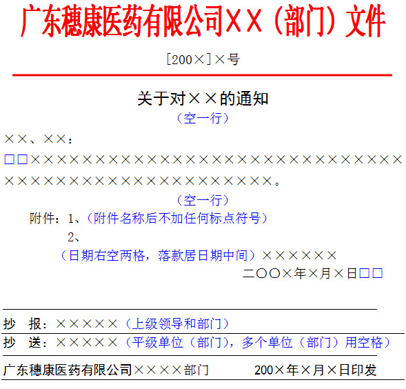 1、各單位(部門)紅頭文件模板文件格式要求: (1)文件頭:宋體加粗紅色字體,字體大小根據(jù)單位(部門)名稱字?jǐn)?shù)的多少介于40-60號字體之間,同時根據(jù)字體縮放調(diào)整至同一行內(nèi) (2)發(fā)文字號:宋體小三號字體(注:序號前不加“第”,也不加“0”) (3)正文標(biāo)題:黑體小二號字體,由事由和文種兩部分組成 (4)正文:宋體四號字,行距為固體值23 (5)落款、日期: 宋體四號字體 (6)板記(文尾部分):黑體四號字體 (7) 公文用紙?zhí)祛^(上白邊)為:37mm±1 mm; 訂口(左白邊)為:28mm±1 mm; 版心尺寸為:156mm×225 mm(不含頁碼) 2、文件模板(注:①文中“□”代表空格;②文中藍(lán)色虛線框為頁面示意圖)